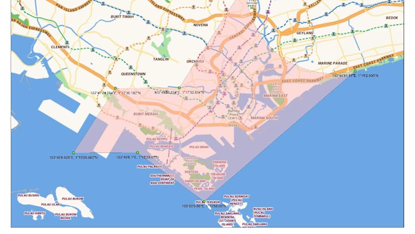 CAAS said the restricted area (shown in the map below) will encompass the Padang and its surrounding locations, and will extend from ground level to 600 feet (183m) above mean sea level.