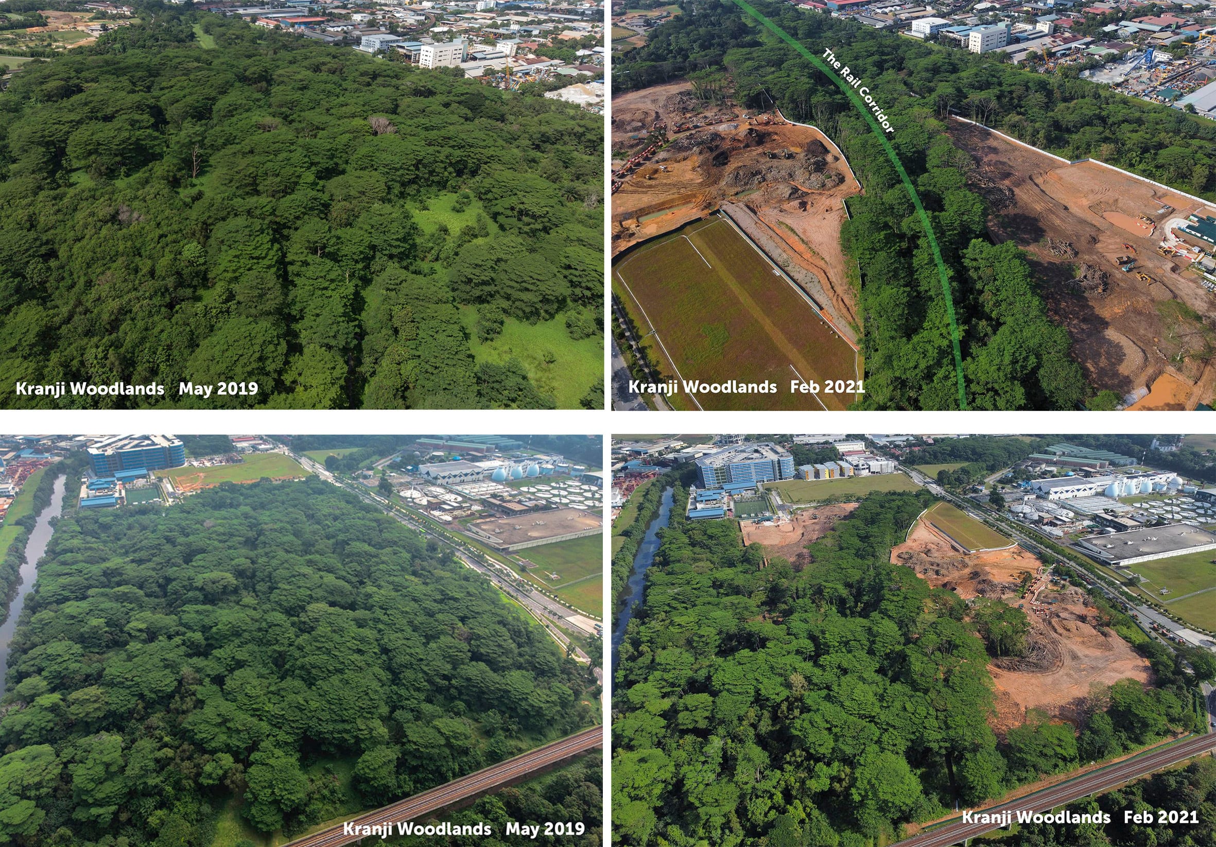 One photograph, dated May 2019, showed a fully forested area. A second image shot this month showed the same plot of land with just a narrow strip of greenery — through which the Rail Corridor runs — now flanked by cleared earth.
