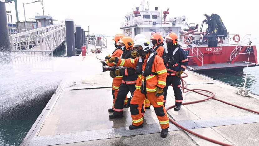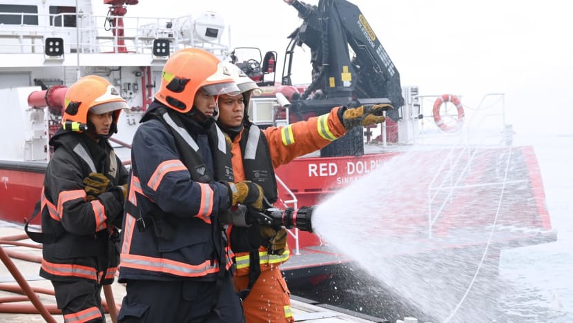 A second team of officers from Marina Bay Fire Station, who arrived later at the scene, came aboard a rapid response fire vessel dispatched from West Coast Marine Fire Station.
