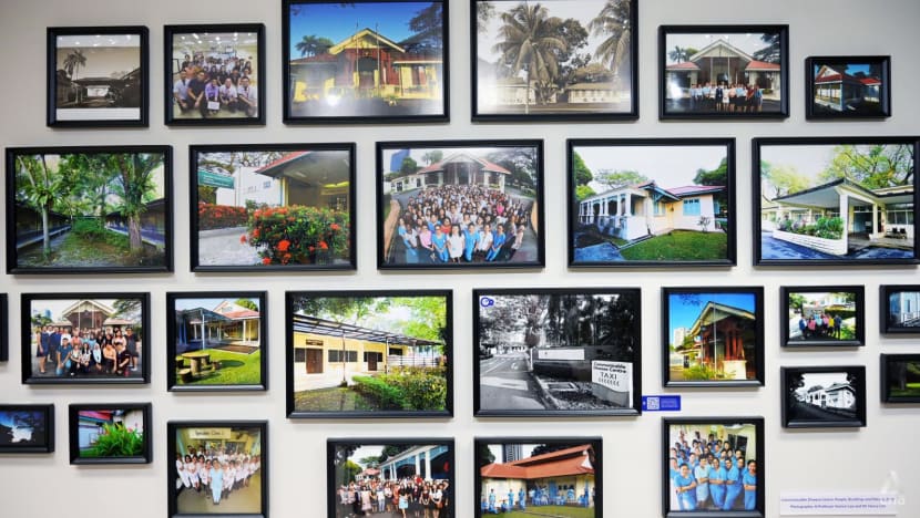 Professor Leo Yee Sin standing next to old photos of the Communicable Disease Centre on May 3, 2023. (Photo: CNA/Try Sutrisno Foo)