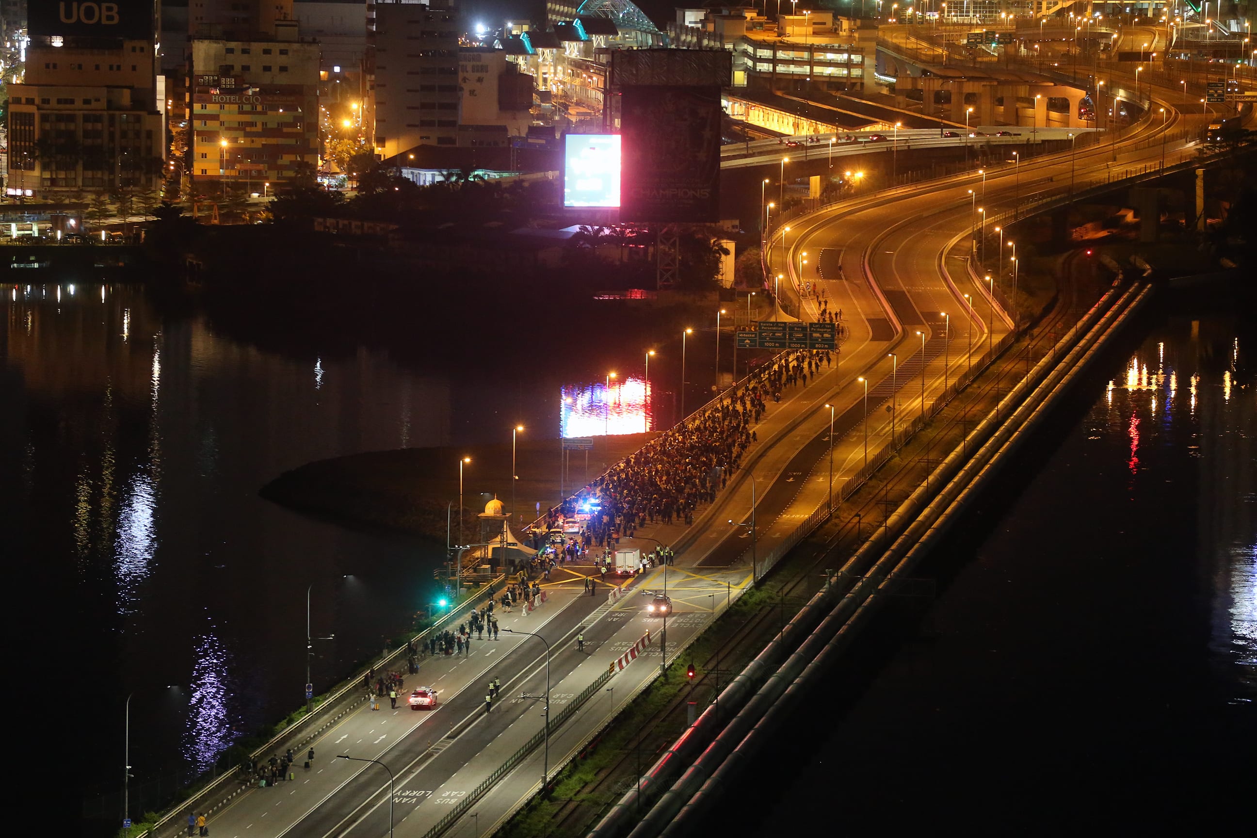 Just before midnight, the first few motorists entering Singapore from Malaysia waved excitedly to reporters and long queues started forming after that.