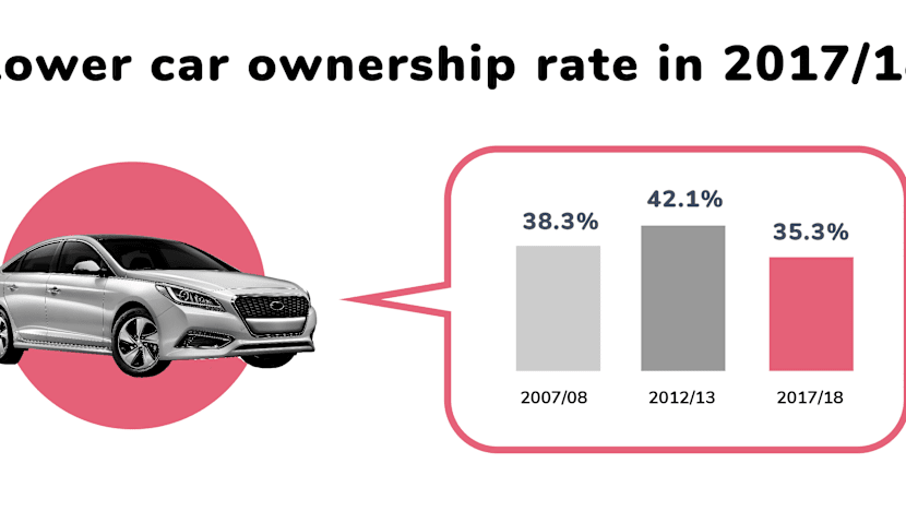 The survey found that the car ownership rate fell to 35 per cent in 2017/2018.