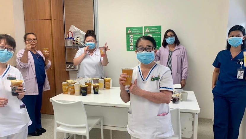 Mr Benjamin Lim, 39, brand manager of Woobbee, which sells bubble tea, said that they made 350 cups of the drinks and delivered them on Tuesday to healthcare workers at hospitals such as the Singapore General Hospital, the National Centre for Infectious Diseases and Sengkang General Hospital.