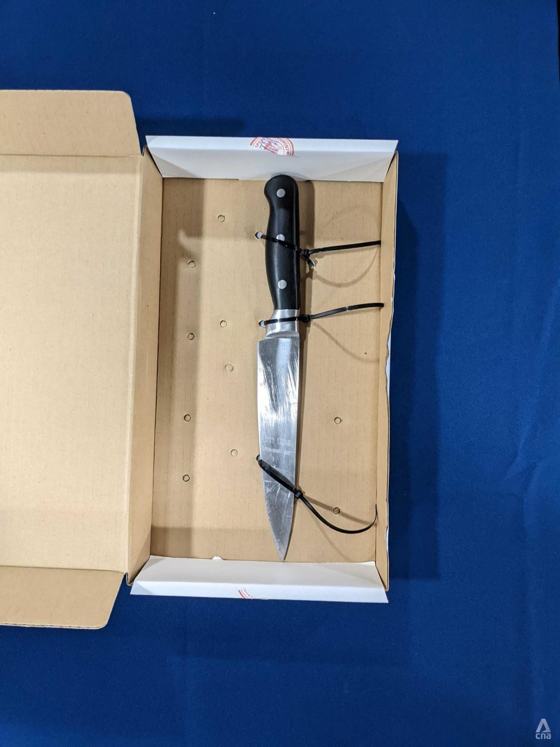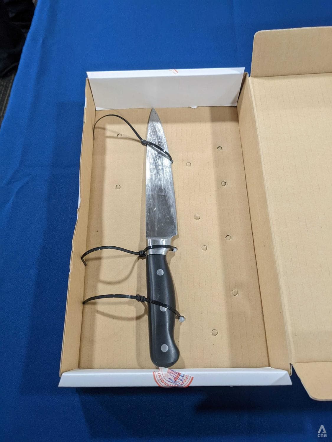 The knife used by a man who had been shot by a police officer along Bendemeer Road on Mar 23, 2022. (Photo: CNA/Try Sutrisno Foo)
