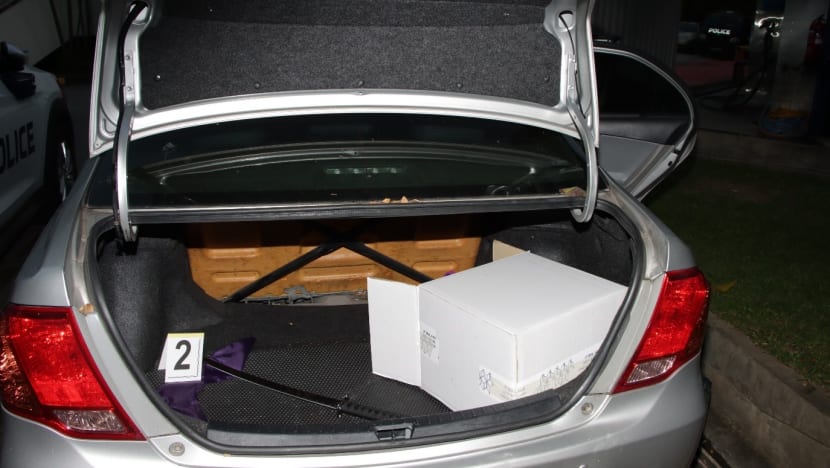 A sword was found in the man's car boot and was seized by police on Jul 7, 2022. (Photo: Singapore Police Force)
