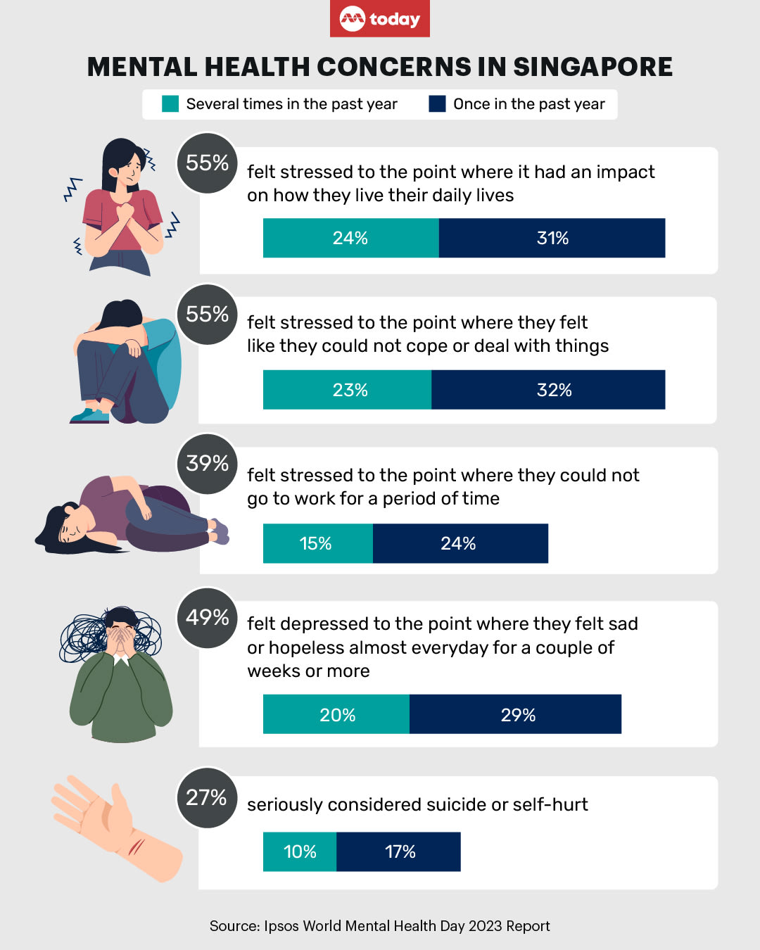 These were the findings from a survey by market research firm Ipsos, in its Ipsos World Mental Health Day 2023 Report published on Monday (Oct 9).
