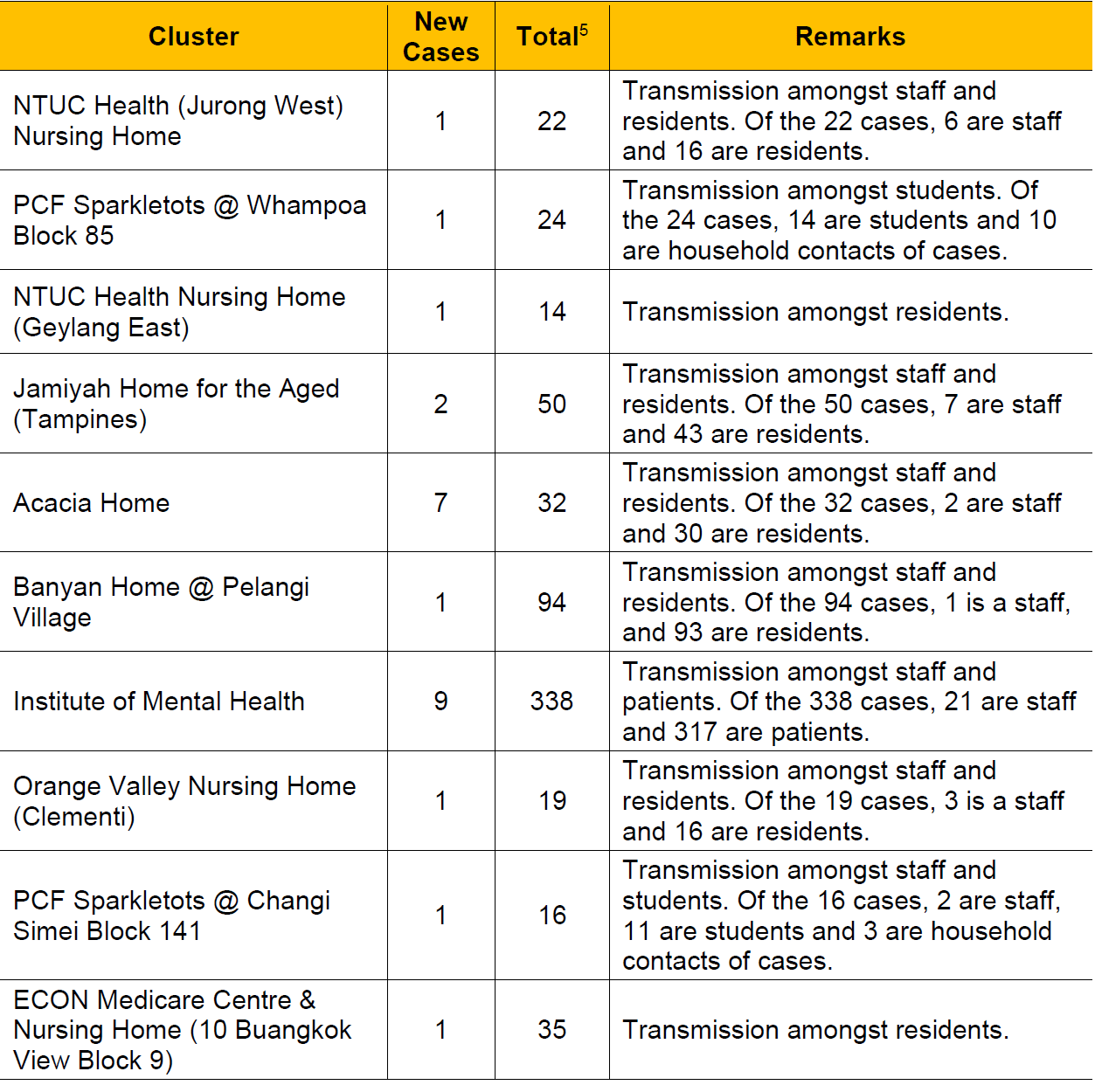 MOH said it is currently "closely monitoring" 10 active large clusters.