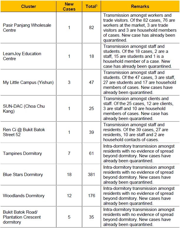 Twelve more cases were also linked to the Woodlands Dormitory cluster, which now has 176 cases.