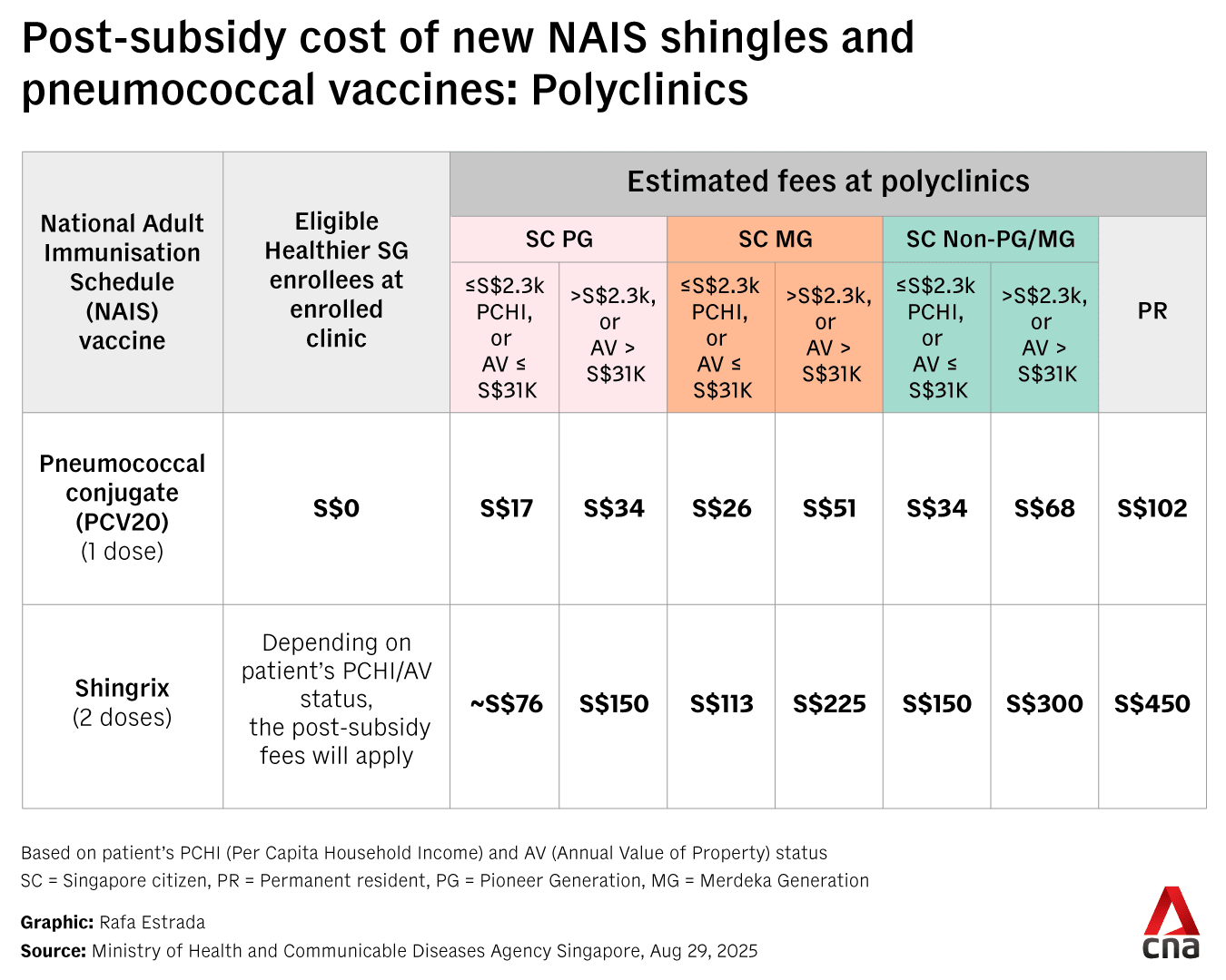 From mid-2026, MediSave500/700 will be usable to cover the post-subsidy cost of PCV20 and Shingrix, said the health ministry.