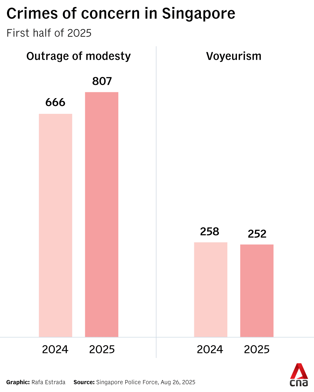 A total of 807 outrage of modesty cases were reported from January to June this year, up from 666 cases during the same period in 2024.