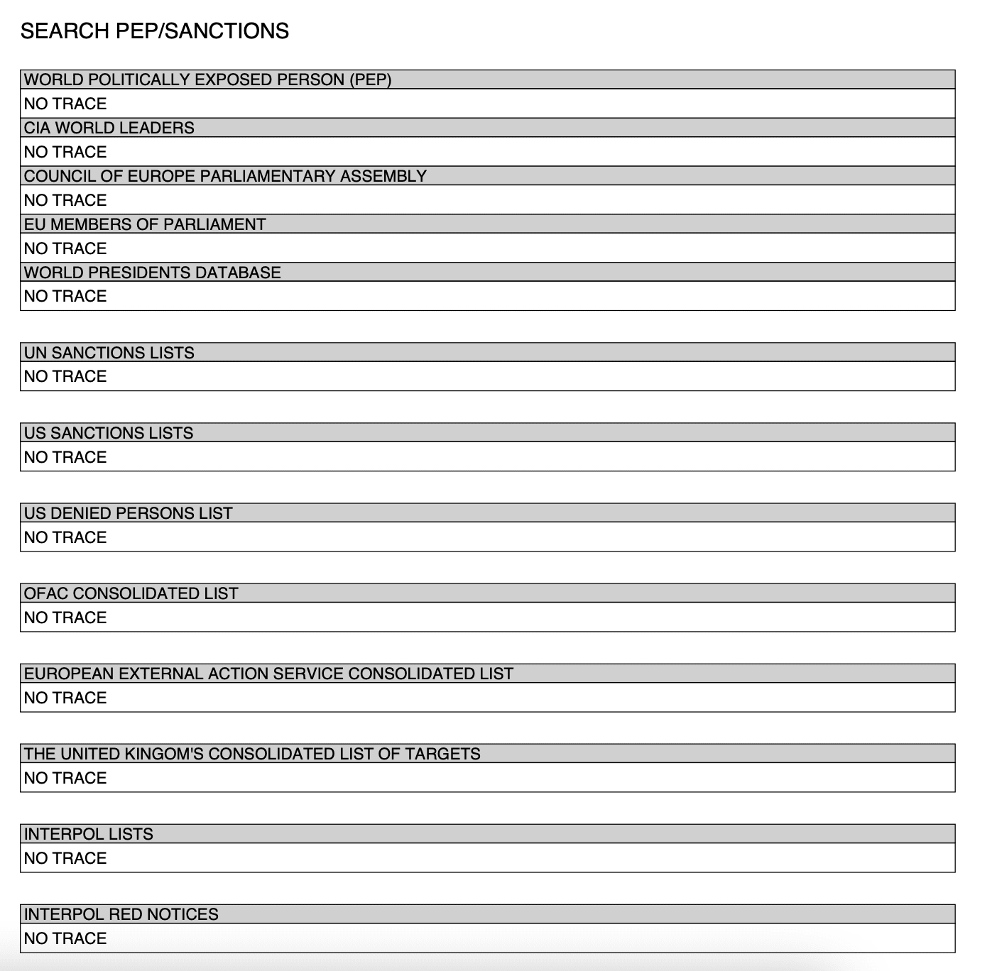 DUE DILIGENCE CHECKS