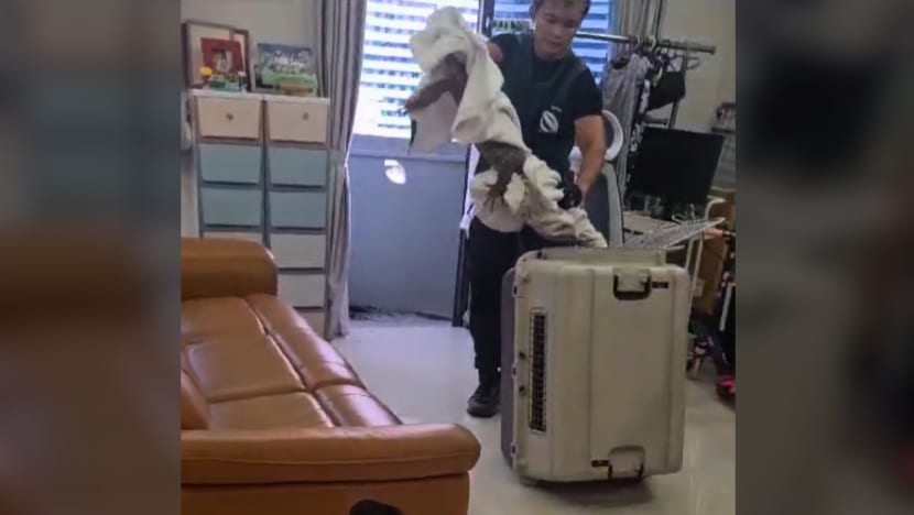 A video of the reptile lumbering around the living room and exploring the balcony of the 11th-storey Punggol flat - where it had been kept locked out - went viral after CNA’s story.