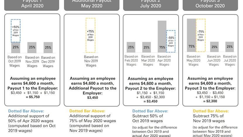 The subsidies will cover 75 per cent of the first S$4,600 of each local employee’s salary in May.