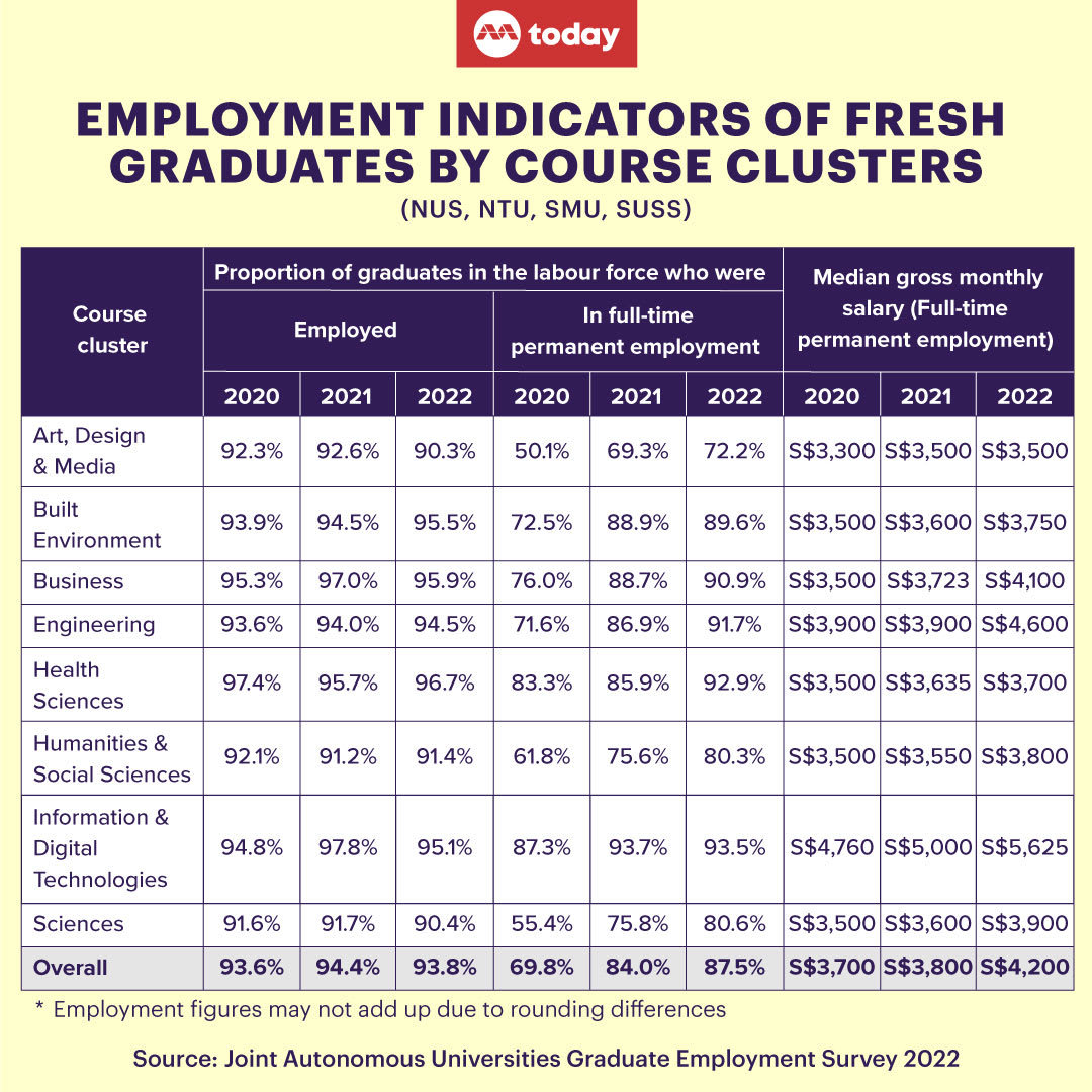 Of these, 94.9 per cent secured a full-time job, down from 96 per cent in 2021. Another 0.8 per cent were freelancing, compared to 0.3 per cent in 2021.
