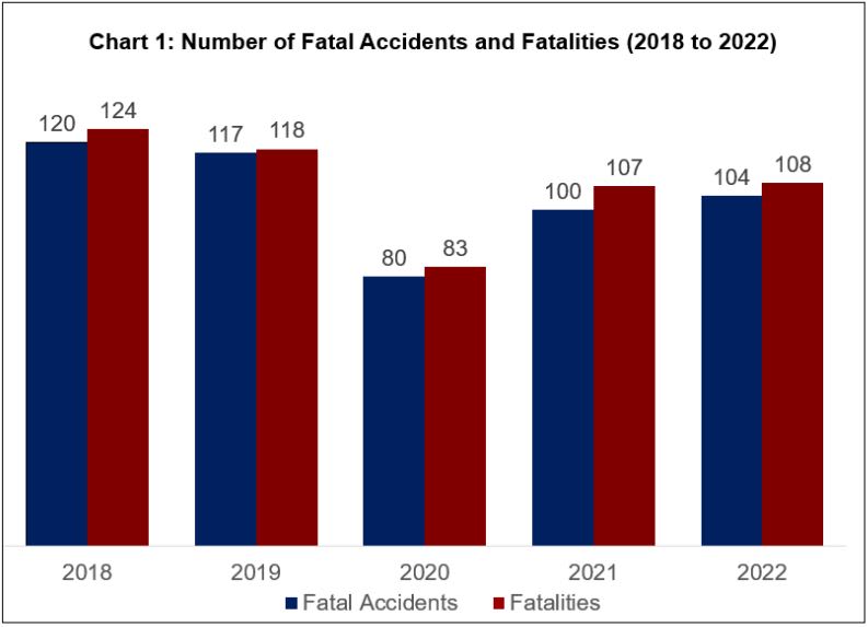 Fatal accidents involving motorcyclists, however, decreased by 10.7 per cent to 50 in 2022, with motorcyclist and pillion rider fatalities decreasing 6 per cent to 47.