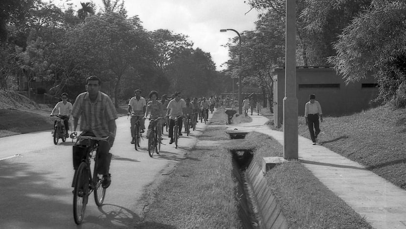 Dock workers from Singapore Naval Base in Sembawang returning home from work in 1966. Photo: Mr David Ayres via Dr Anitha Devi Pillai