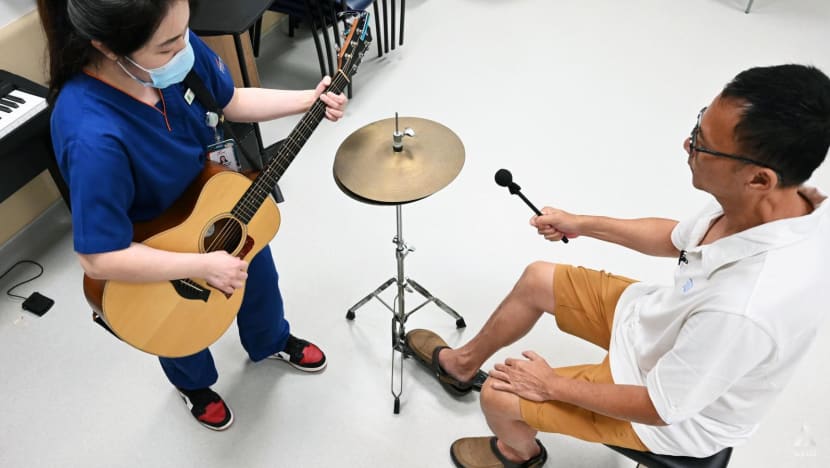 At SGH, music therapy is used to help patients like Mr Soh enhance their neuro-rehabilitation goals, such as vocalisation, gait training and endurance.