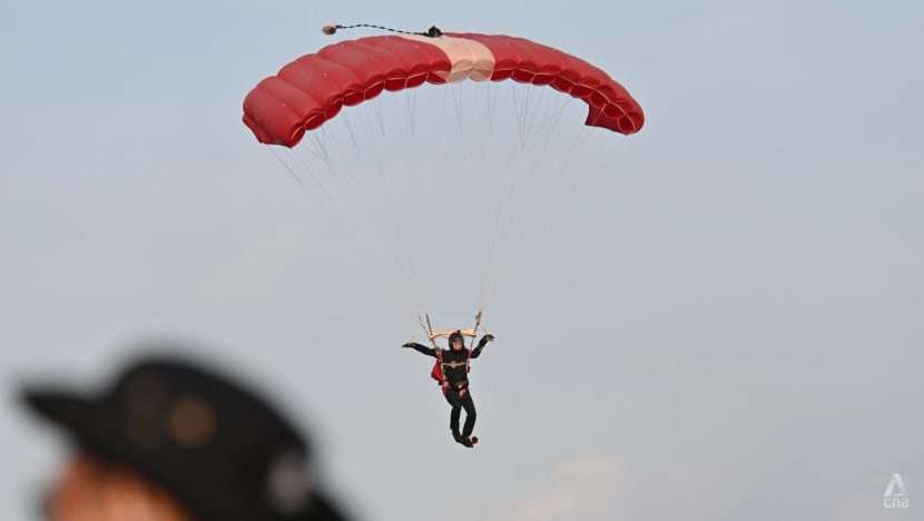 As the last of the 10 parachutists, Third Warrant Officer (3WO) Jeffrey Heng, descended, he skidded on the pavement and fell to the ground. Medics rushed to his side before he was stretchered off.