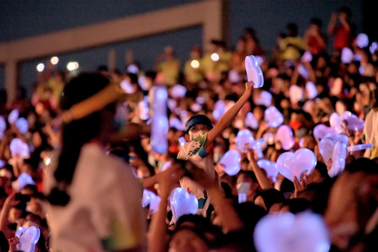 To start the show rolling, emcees Rishi Budhrani, Joakim Gomez, Sonia Chew and Siti Khalijah got the 25,000-strong crowd moving by teaching them how to use their heart drum found in the NDP fun pack.