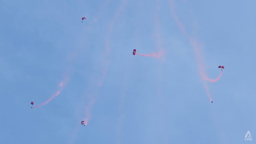 But before that, audiences were also treated to NDP staples like the Red Lions free-fall jump, total defence display segments and the marching contingents.