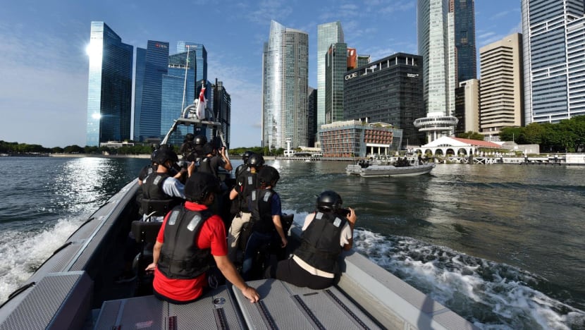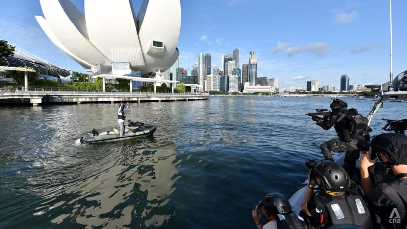 SINGAPORE: If you were out for an early walk in the Marina Bay area past 8am on Saturday (Jul 16), you might have gotten a glimpse of a high-speed boat chase involving navy vessels and people on jet skis.