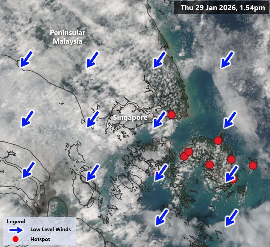 SINGAPORE: Several hotspots were identified in the Indonesian island of Bintan on Thursday (Jan 29) but the haze is unlikely to reach Singapore, said the National Environment Agency (NEA).