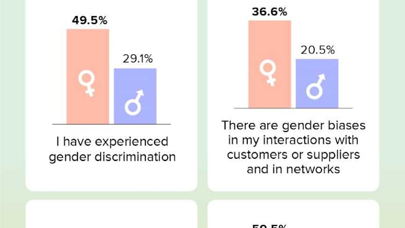 Having experienced gender biases in interactions with customers, suppliers and in networks (36.6 per cent versus 20.5 per cent of male respondents)