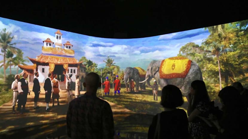 An interactive display called "Meeting of the worlds", part of an exhibition at the National Museum of Singapore to mark Singapore's bicentennial celebrations. Photo: Najeer Yusof/TODAY