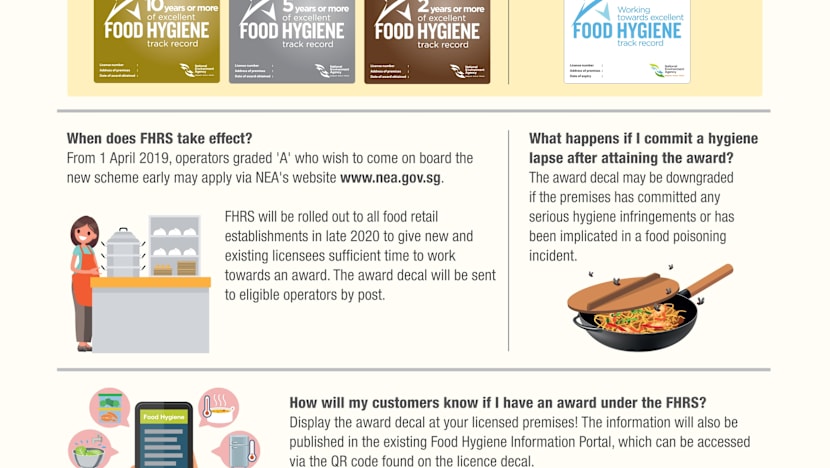 Essentially, when the new scheme kicks in, all new food licensees will be given a label indicating that they are "working toward excellent hygiene track record", which is valid for two years before NEA assesses if they are eligible for a bronze award.