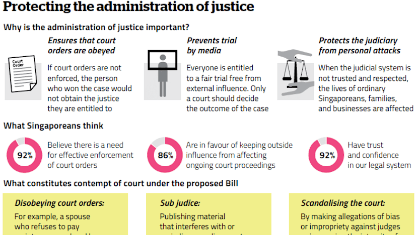 Asked if the influence of social media has made it more urgent to enact court contempt into the statutes, the Ministry of Law said the matter has been “in the works for several years”.