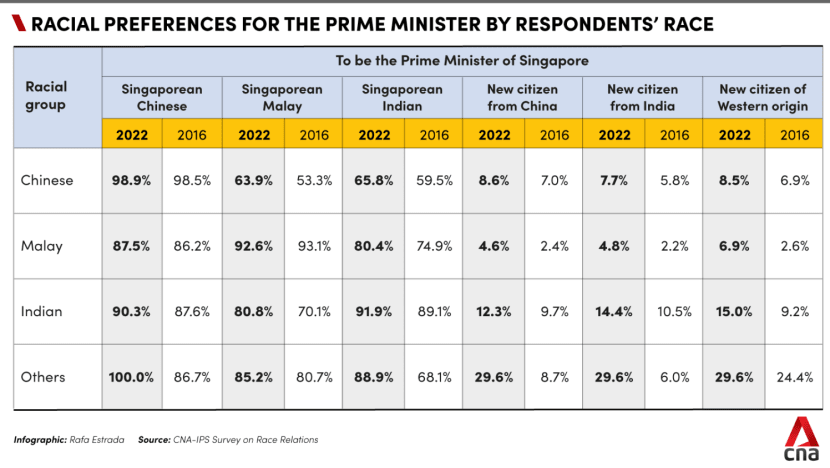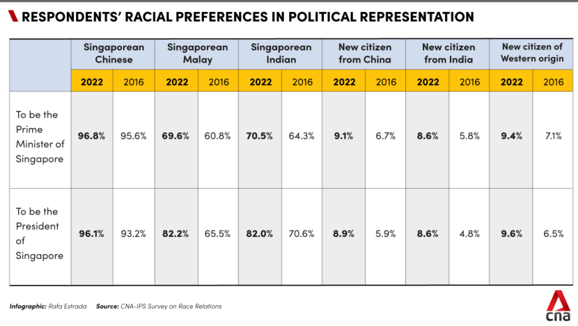 SINGAPORE: Singaporeans have become more open to the idea of electing top leaders that are non-Chinese, based on a survey conducted by CNA and the Institute of Policy Studies (IPS).