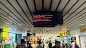 A power fault at stations along the North-East Line, including Serangoon (left), and on a train at Hougang, on Aug 12, 2025. (Photos: CNA/Koh Wan Ting, Kora Fong)