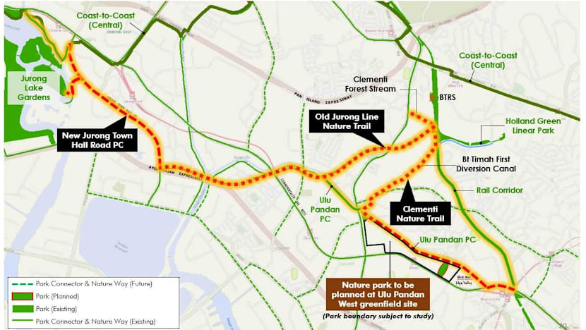 Members of the public will be able to walk along the Old Jurong Line Trial and the Clementi Nature Trail as part of a loop that is completed by a section of the existing Ulu Pandan Park Connector.