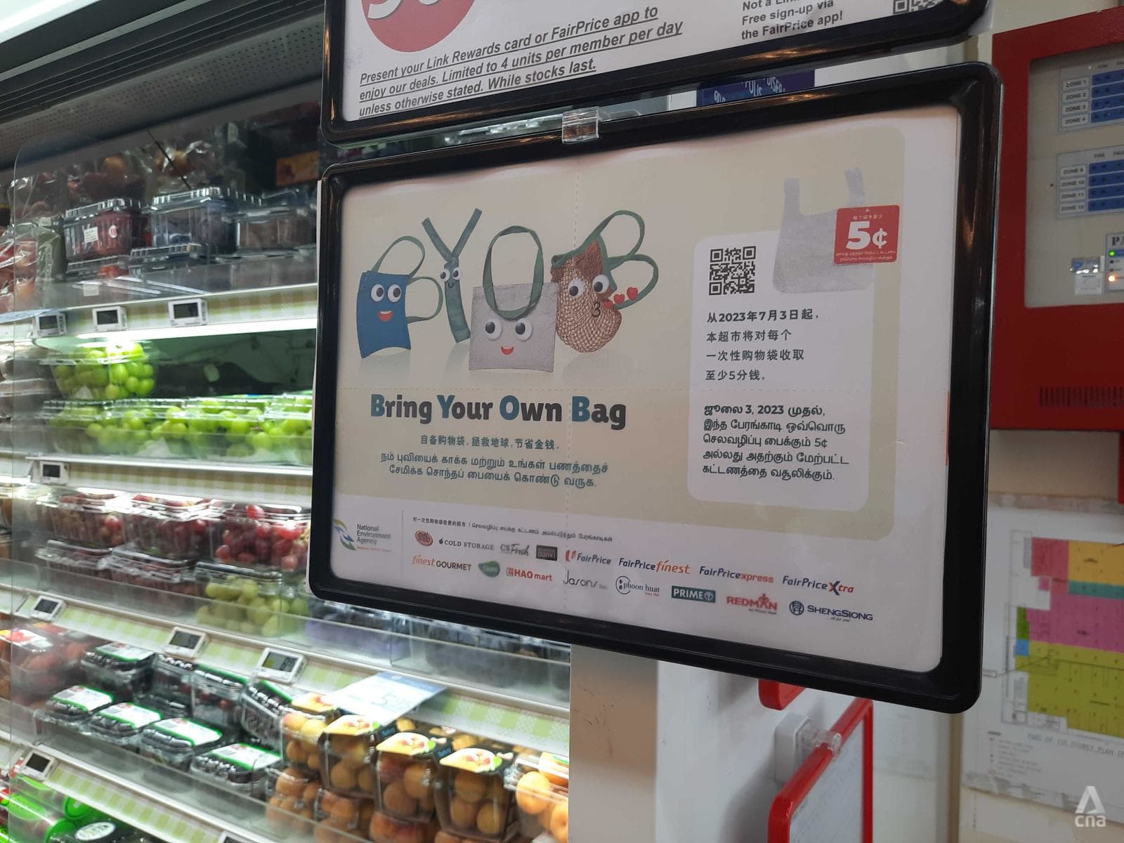FairPrice Group will charge a flat 5-cent fee for each bag regardless of size, and across all its outlets, including convenience stores Cheers and FairPrice Xpress.