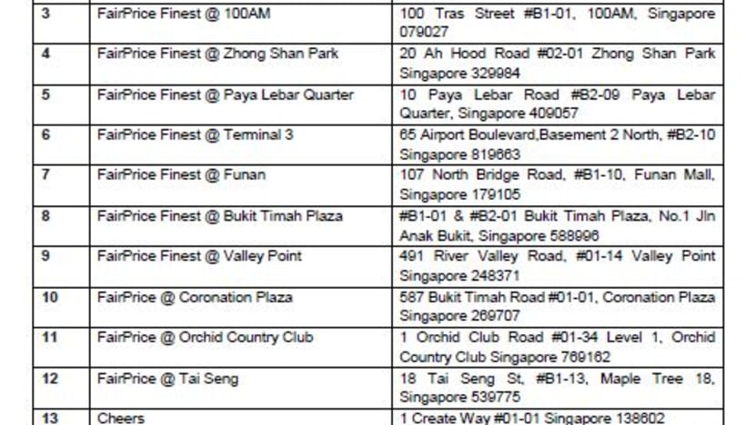 From Nov 11, the initiative will involve 12 FairPrice outlets — including those in Hougang One, Kallang Wave Mall, Paya Lebar Quarter and Bukit Timah Plaza — 12 Cheers outlets and one FairPrice Xpress outlet.