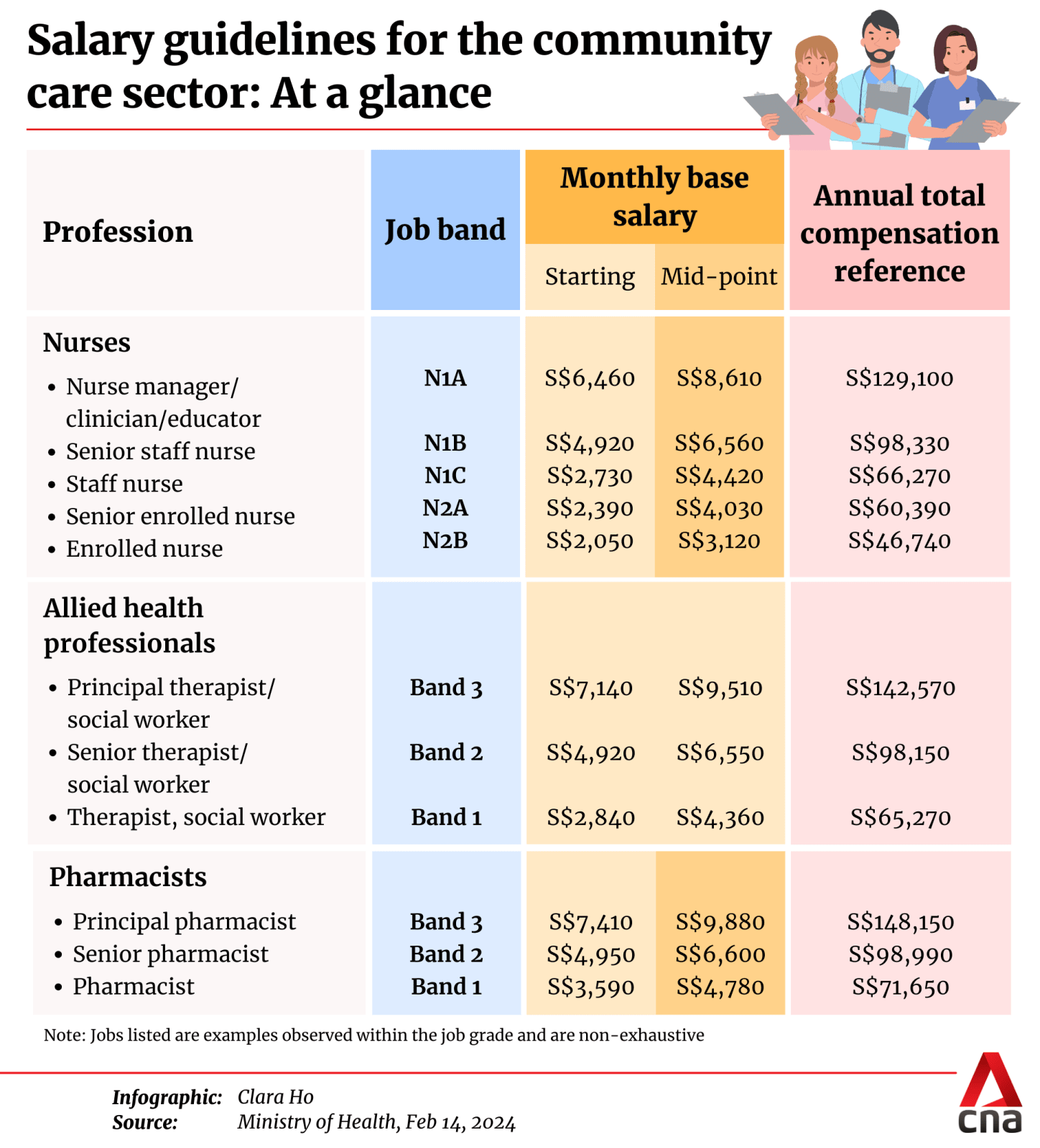 New nurses and those aged below 46 will receive S$20,000 to S$30,000 every four to six years. Older nurses who have worked for at least five years will receive S$5,000 to S$15,000 upfront, and they will then be placed on an accelerated payout path.