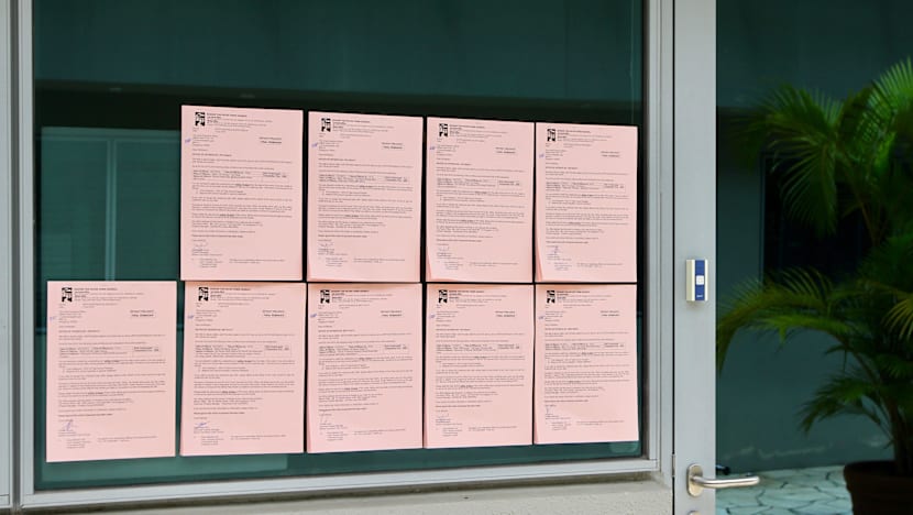 About 170 offence notices from the Bishan-Toa Payoh Town Council were pasted at oBike’s abandoned office on Monday (July 2) morning.