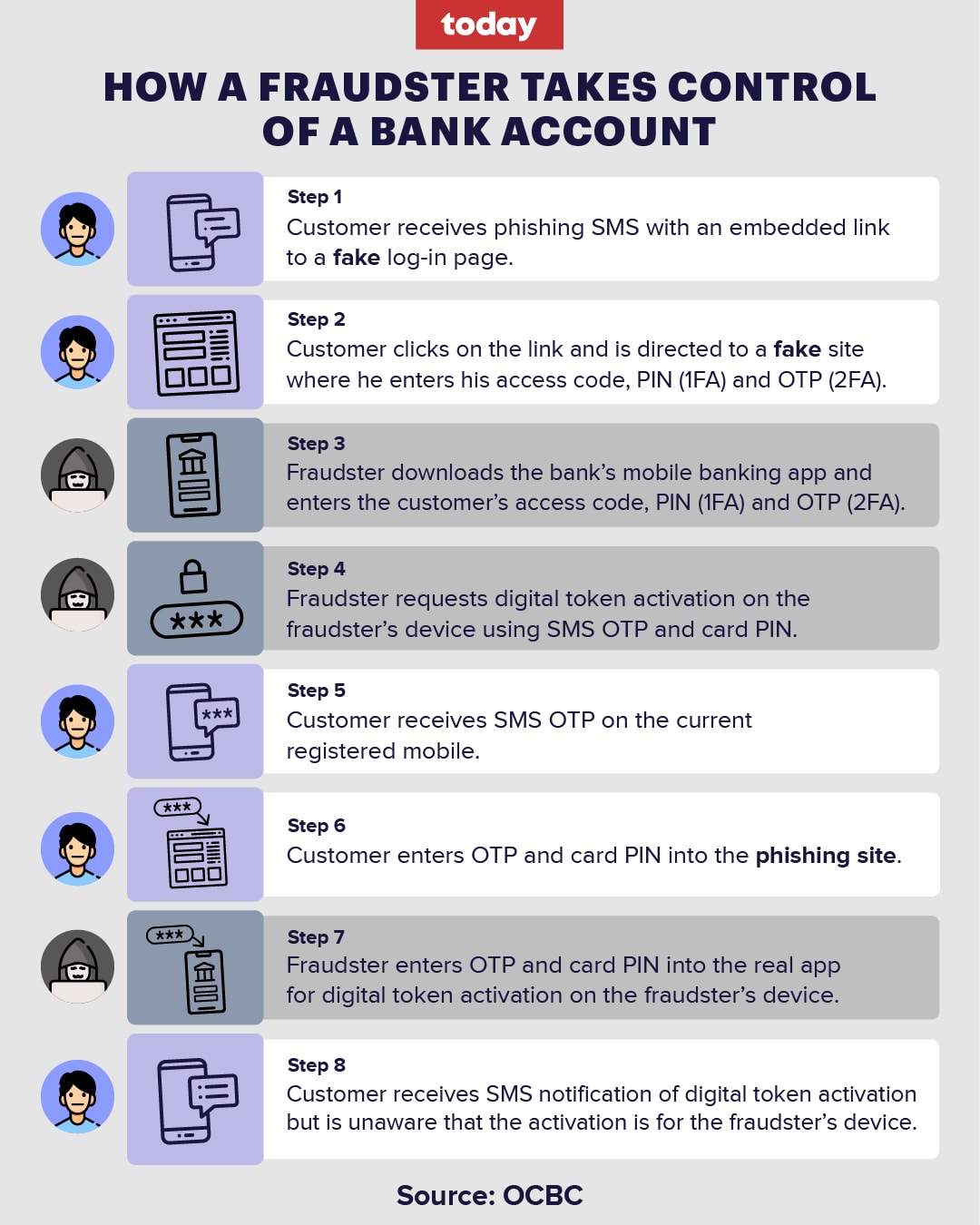 From there, the fraudsters are able to request to activate a digital token that allows them to receive OTPs from the bank on their device, allowing them to make transactions.