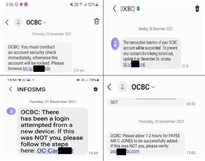 Members of the public are advised not to click on "dubious" URL links provided in unsolicited text messages. OCBC will not send SMSes containing Bitly links, said SPF.