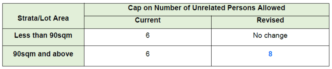 Minister for National Development Desmond Lee said the increased cap will only apply to larger properties as these can "accommodate more occupants with minimal impact on those around them, in order to maintain a conducive living environment for the larger community".