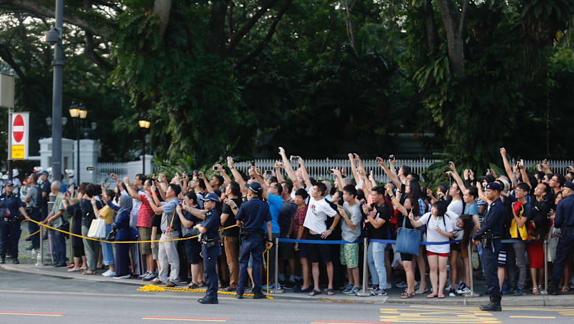 ‘Once in a lifetime’: Hundreds gather outside hotels, Istana to catch sight of Trump and Kim