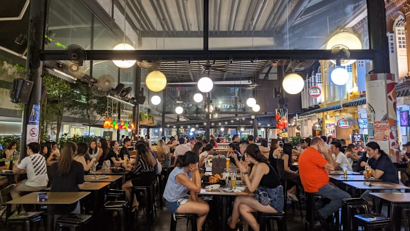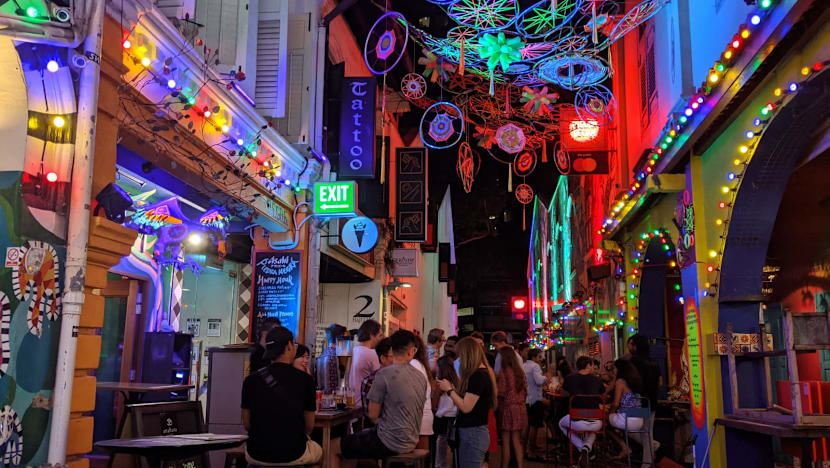 When TODAY visited Haji Lane at 11pm, bar patrons could be seen huddling together in close proximity and sharing drinks with one another.