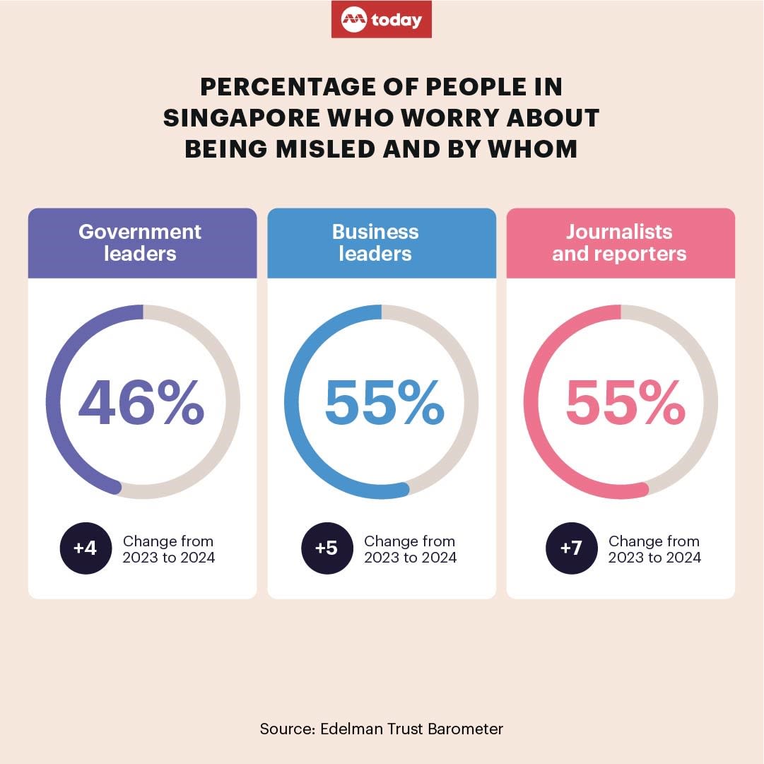 - More than half (55 per cent) in Singapore think journalists intentionally tried to mislead them, up from the 48 per cent who thought so the year before