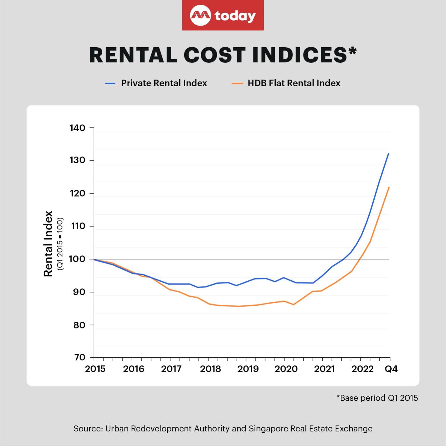 HDB and private residential rents have increased sharply since 2021 by 38 per cent and 43 per cent respectively, after having stayed broadly stable in the preceding few years.