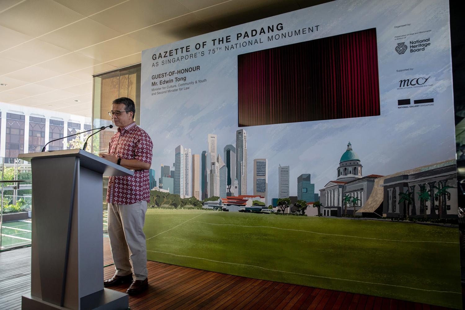 Speaking on Monday at an event ahead of the gazette, Mr Edwin Tong, Minister for Culture, Community and Youth, said that the Padang, along with the 74 other national monuments, "preserves and celebrates the stories that define Singapore and our people".