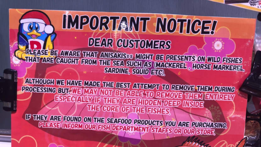 The spokesperson for Don Don Donki Singapore also referred to an advisory that is placed near its raw seafood product displays which state that parasitic worms "can be prevented by cooking the fish adequately at temperatures which surpass higher than 60 degrees Celsius or by freezing it".