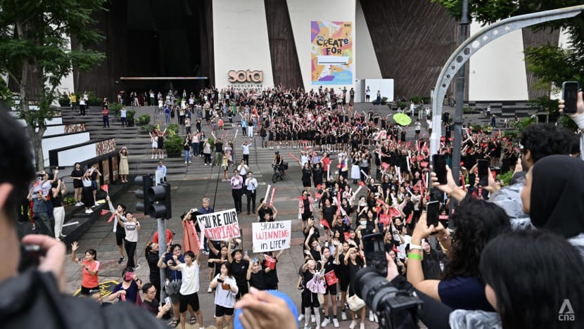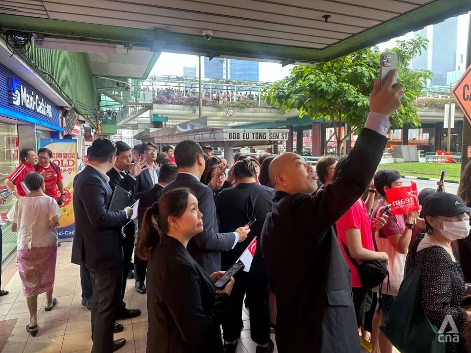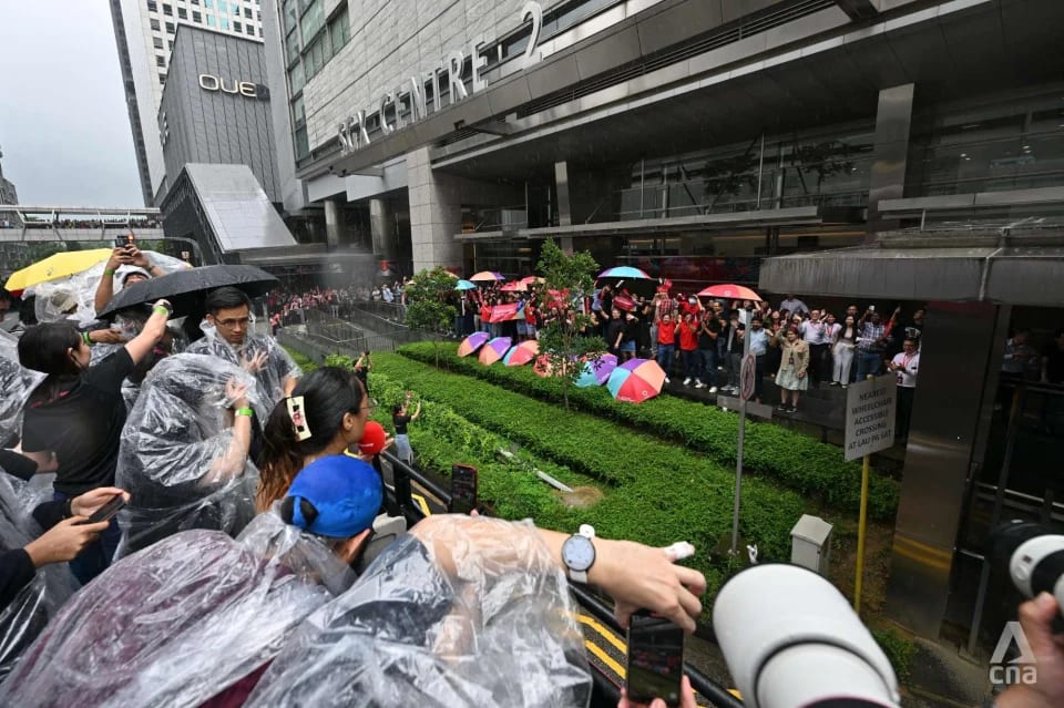 At Orchard Road, supporters gathered early with Singapore flags and posters.