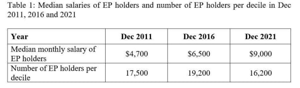 From December 2011 to December 2021, the median monthly salary of these pass holders jumped from S$4,700 to S$9,000.
