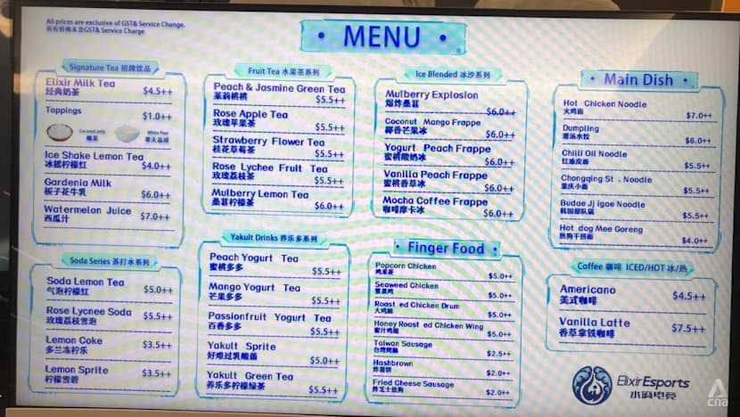 Elixir Esports aims to shake that up with a focus on service - staffers greet customers at its outlets - and an in-house food and drinks menu which includes bubble tea and smoothies.