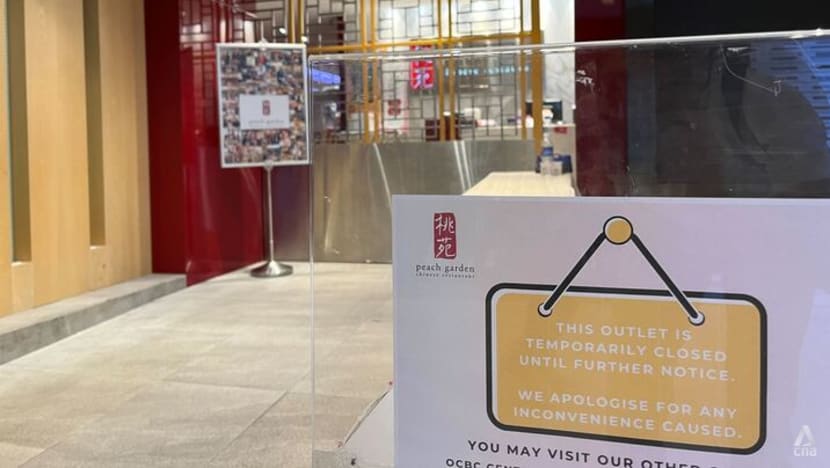 When CNA visited Peach Garden at Thomson Plaza at 11am on Thursday, the restaurant was partially shuttered, and staff members were seen cleaning dinnerware inside.